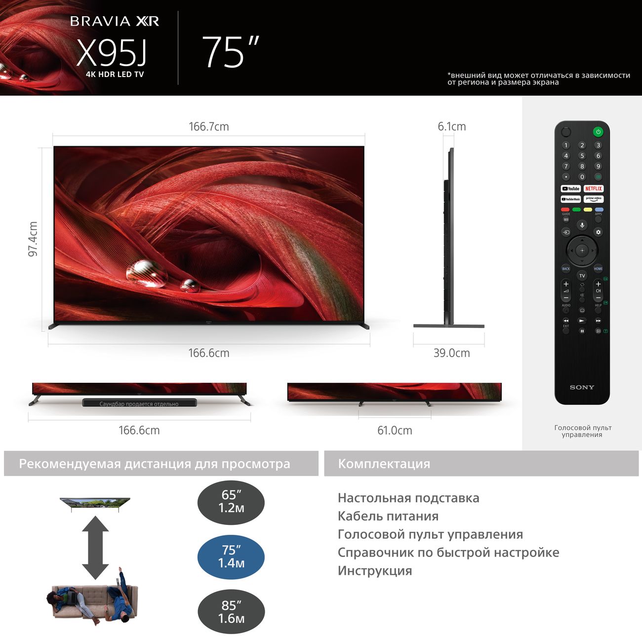 Телевизор Sony XR75X95J оснащён интеллектуальным процессором Cognitive Processor XR. Он работает подобно человеческому мозгу: одновременно проводит перекрёстный анализ сразу нескольких сотен тысяч элементов (цвет, детализация, контрастность и другие), чтобы оптимизировать параметры изображения.