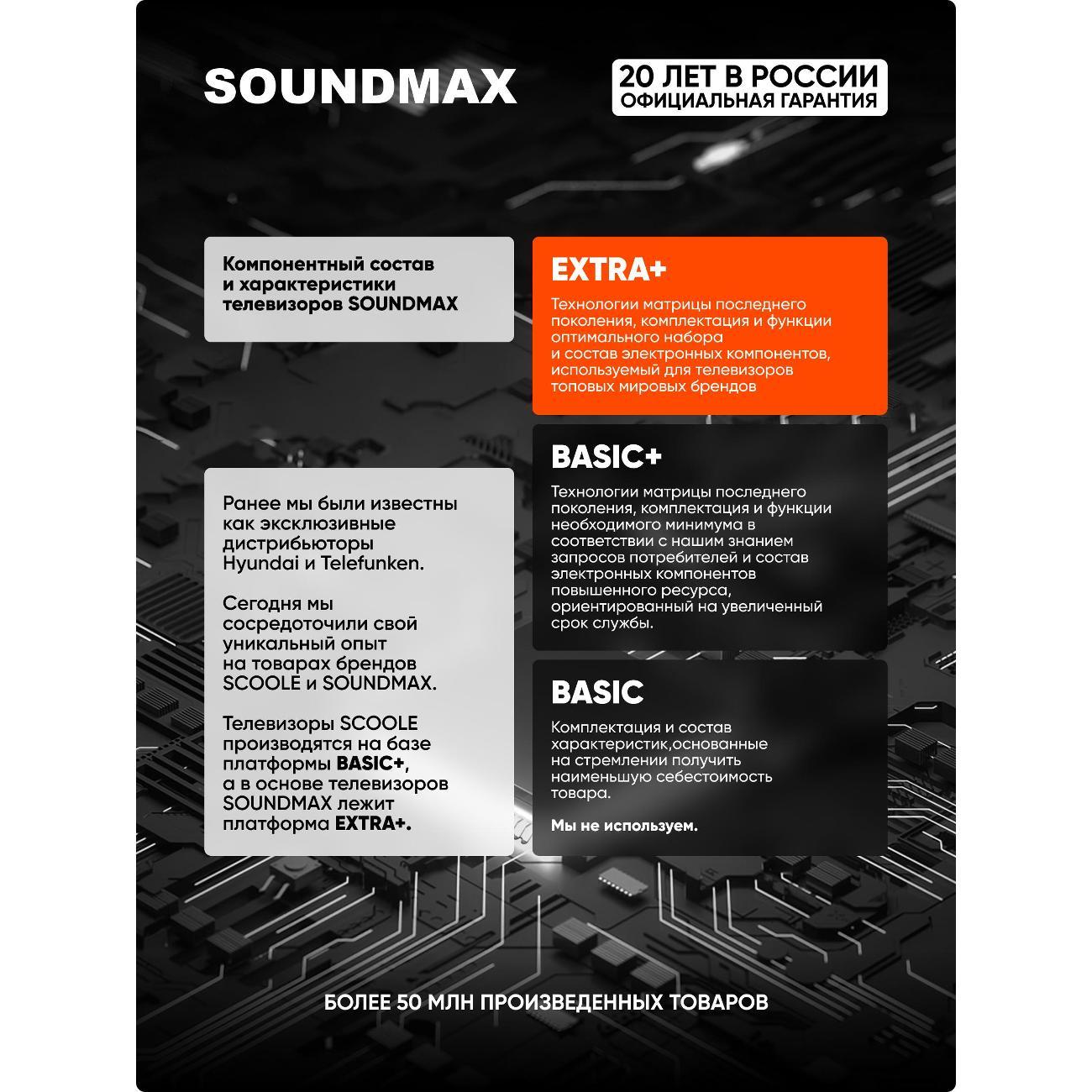 Вы можете купить Телевизор Soundmax SM-LED43M02S в магазинах М.Видео по доступной цене. Телевизор Soundmax SM-LED43M02S: подробное описание, фото и отзывы реальных покупателей, характеристики, возможность скачать инструкции и подобрать аксессуары.