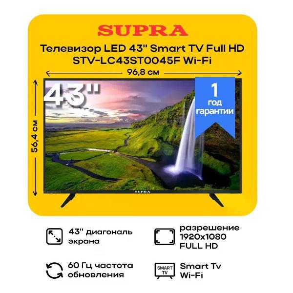 Вы можете купить Телевизор Supra STV-LC43ST0045F в магазинах М.Видео по доступной цене. Телевизор Supra STV-LC43ST0045F: подробное описание, фото и отзывы реальных покупателей, характеристики, возможность скачать инструкции и подобрать аксессуары.