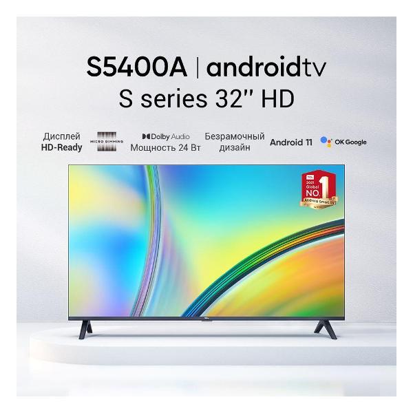 Телевизор TCL 32S5400A — устройство с безрамочным дизайном и широкими углами обзора, которые достигают 178° по горизонтали и вертикали. Предусмотрена технология Chromecast, позволяющая организовать трансляцию медиа-контента со смартфона, планшета или ПК на большой экран. Поддерживается управление при помощи пульта ДУ или голосового помощника Google Assistant — последний значительно упростит взаимодействие с телевизором. Диагональ экрана составляет 32 дюйма, разрешение — 1366х768 пикселей. Частота обновления достигает 60 Гц. Формат экрана — 16:9. Для подсветки используется технология Direct LED. Поддержка HDR10 делает картинку более яркой и реалистичной в наиболее темных и светлых зонах.