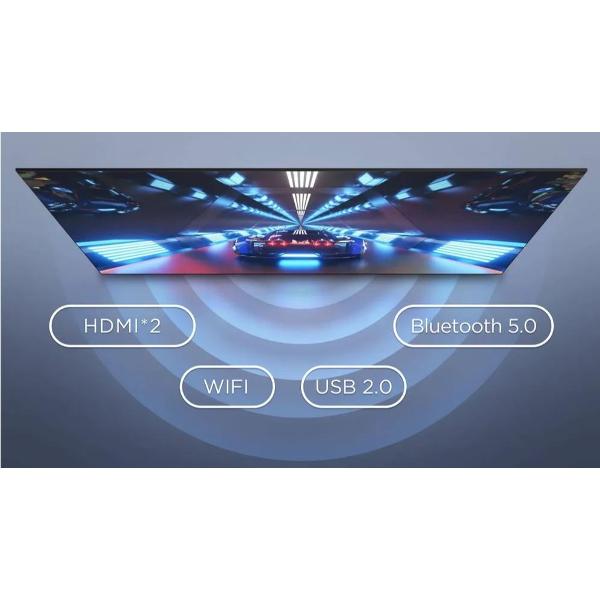 Для обработки изображения при плохом уровне сигнала применяется система цифрового шумоподавления. За звуковое сопровождение отвечает аудиосистема Dolby Audio. Мощность фронтальных АС составляет 2х8 Вт — формируют качественный, громкий звук. Предусмотрена технология Smart TV, которая дает возможность пользоваться всеми возможностями интернета — в том числе просматривать видеоконтент на онлайн-платформах. Тип используемой ОС — Android. Для подключение к интернету можно воспользоваться беспроводным способом — для этого установлен модуль Wi-Fi. Технология Bluetooth обеспечивает синхронизацию со сторонними устройствами без использования кабеля.