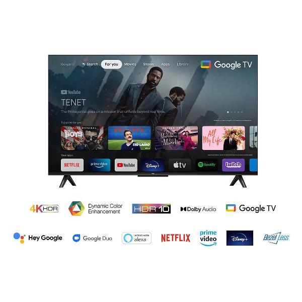 Модель работает под управлением четырехъядерного процессора TCL AiPQ Engine Gen 2 и операционной системы Android (Google TV) с интуитивно понятным интерфейсом, доступом к популярному мультимедийному контенту и магазину приложений. Объем DDR3 памяти — 2 Гб, eMMC 5.0 — 16 Гб. Для управления предусмотрен пульт с голосовым помощником, мобильное приложение TCL Home.