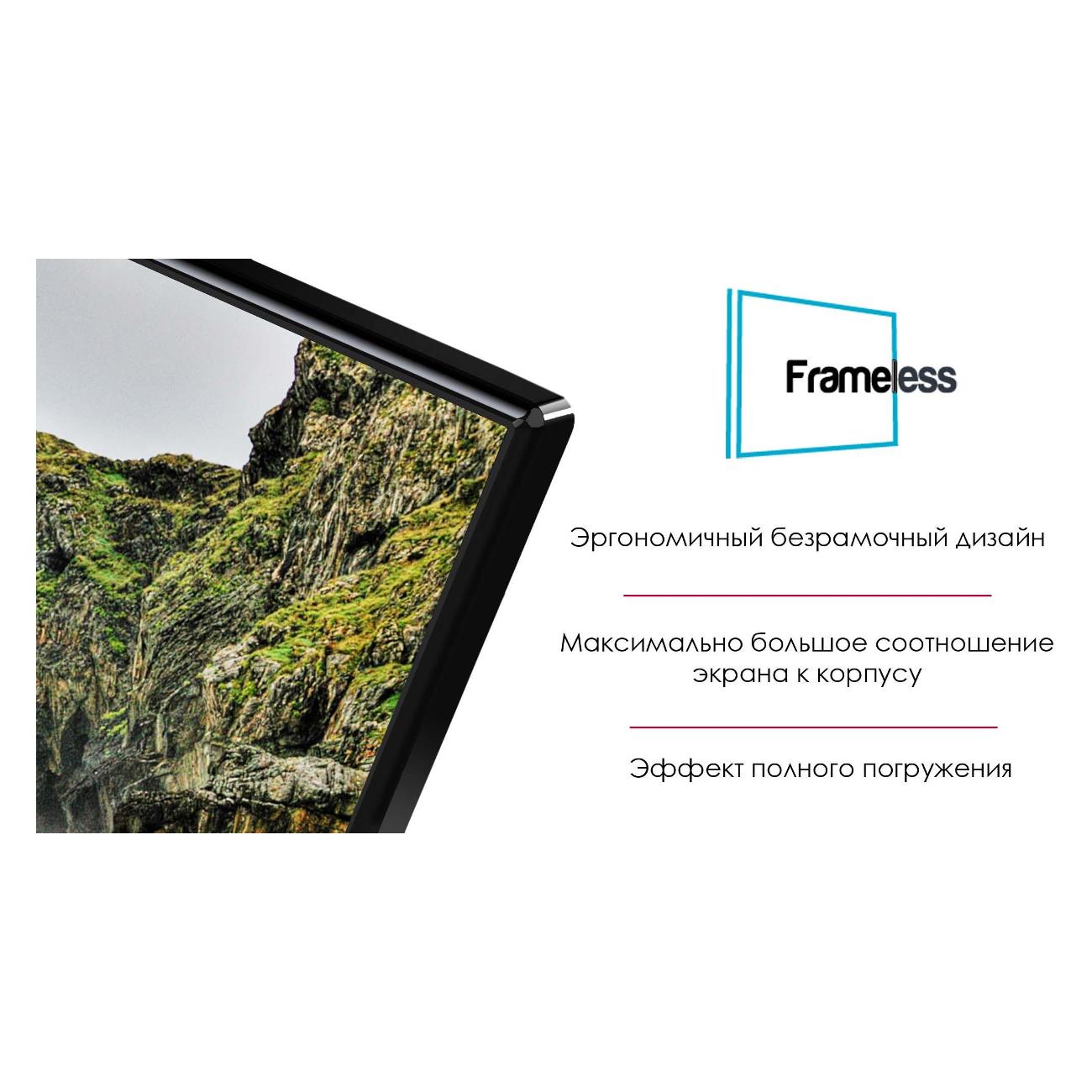 Конфигурацией устройства предусмотрено наличие экрана 4K UHD диагональю 55", разрешением 3840x2160. Экран дополнен светодиодной подсветкой Direct LED. Данная модель поддерживает технологию HDMI ARC и использует цифровое шумоподавление в качестве системы обработки изображения. Конструкция устройства включает в себя фронтальную акустическую систему мощностью 20 Вт. Корпус данной модели оборудован интерфейсами подключения HDMI, USB, RJ45, Toslink, DVB CAM. Предусмотрено наличие функции защиты от детей. Фиксация устройства на стене осуществляется при помощи крепления VESA 300x300, в комплект входит настольная подставка. Потребляемая мощность — 130 Вт. Габаритные размеры модели — 78,3х123,6х28,8 см.