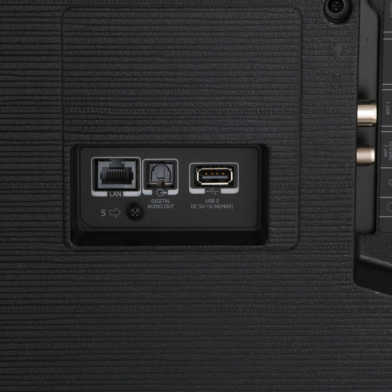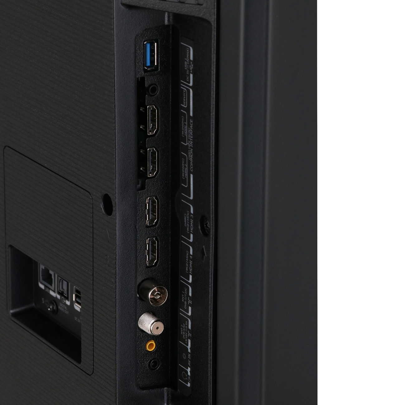Техника работает от электросети, потребляемая мощность составляет 140 Вт. Для безопасного использования предусмотрена функция «Защита от детей». В комплект входит настольная подставка. Габаритные размеры: 101,3х167,3х34,8 см (с подставкой). Вес — 28,7 кг.