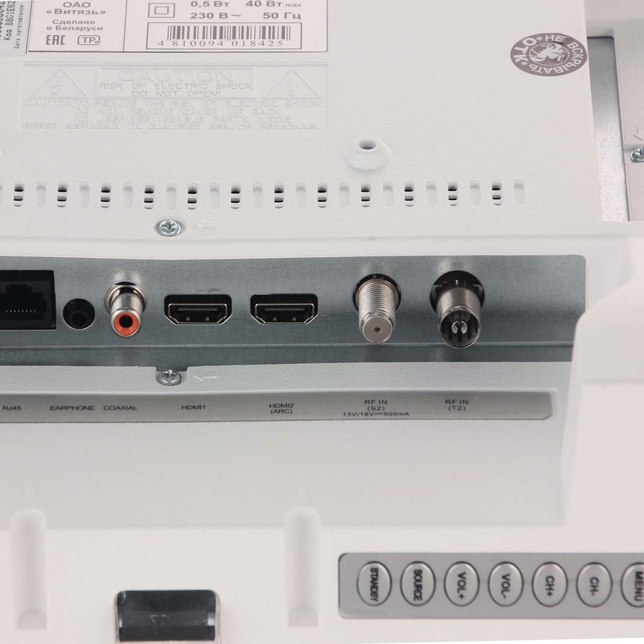 Управление — голосовое либо с помощью пульта ДУ с инфракрасным приемником. Разъем LAN обеспечивает кабельное подключение к интернету или к локальной сети, также есть Wi-Fi. Порты HDMI, USB и RCA позволяют подсоединять внешние устройства и носители информации.