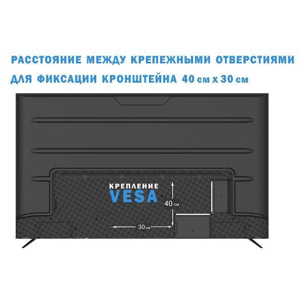 Телевизор «Витязь» 75LU1262 оснащен 75-дюймовым экраном (190,5 см) разрешением 3840х2160 пикселей, который обеспечивает четкую картинку с детализированной проработкой каждого кадра.