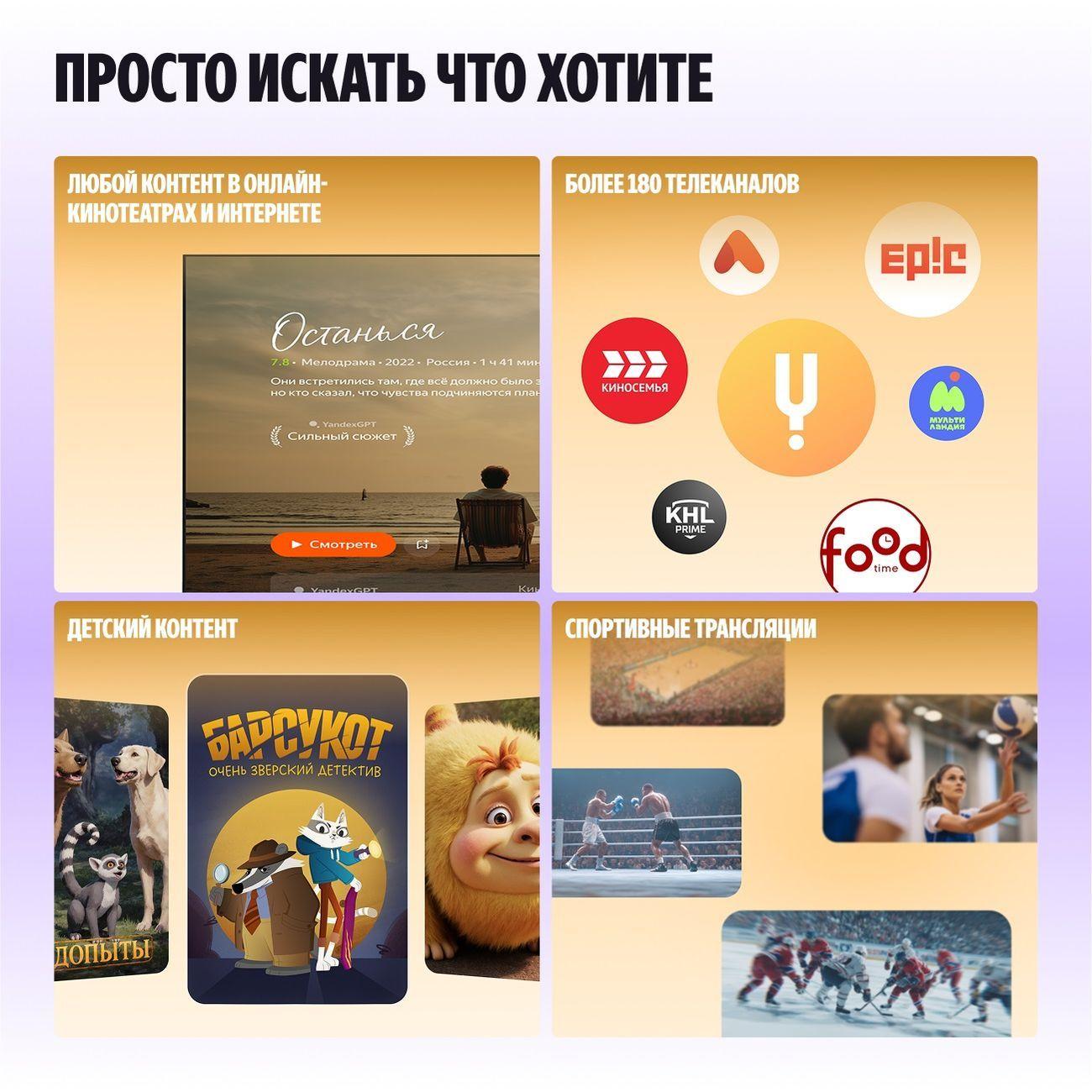 Вы можете купить Телевизор Яндекс ТВ Станция Про MiniLED с Алисой 65“ 4K UHD, QLED в магазинах М.Видео по доступной цене. Телевизор Яндекс ТВ Станция Про MiniLED с Алисой 65“ 4K UHD, QLED: подробное описание, фото и отзывы реальных покупателей, характеристики, возможность скачать инструкции и подобрать аксессуары.