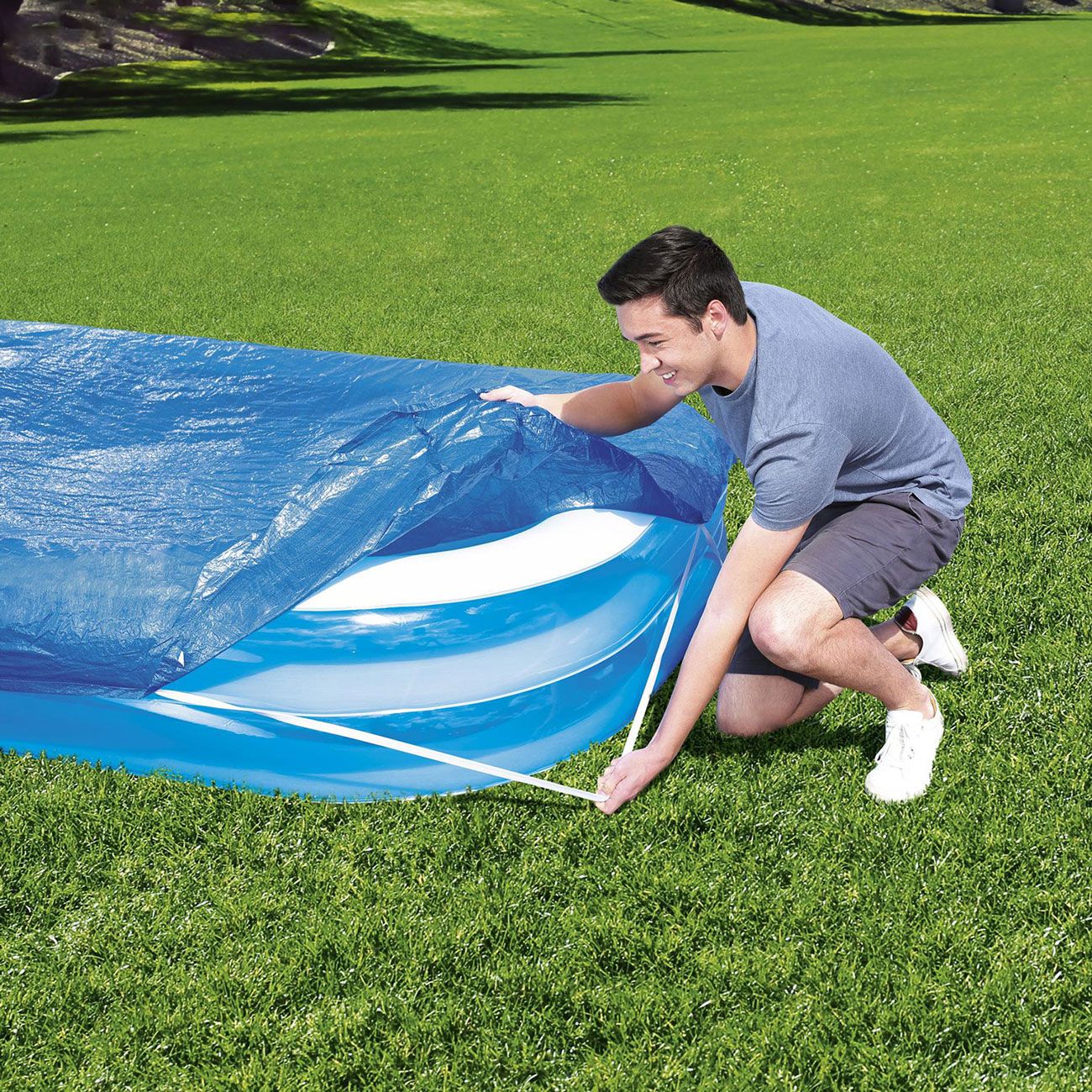 Тент Bestway размером 295 х 220 см предназначен для надувных бассейнов прямоугольной формы размером 262 х 175 см. Полотно выполнено из полиэтилена и защитит бассейн от попадания листьев, насекомых и другого сора.Также тент способствует более медленному остыванию бассейна в ночное время.