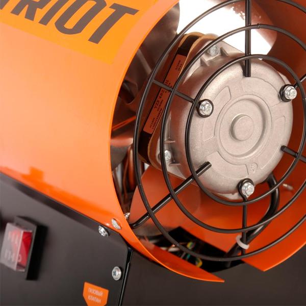 Тепловая пушка Patriot GS 16 функционирует на сжиженном природном газе и применяется для обогрева помещений большой площади — до 480 м². Обязательным условием является эффективная вентиляция и стабильный поток свежего воздуха для отведения продуктов выхлопа. Устройство подходит для бытового и промышленного назначения.
