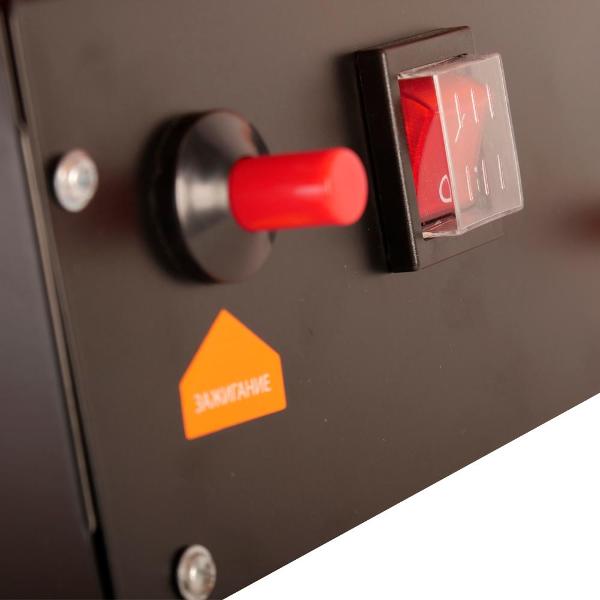 Данная модель оснащена механическим управлением с возможностью регулировки температуры и воздушного потока. Устройство оборудовано корпусом из нержавеющей стали со степенью защиты IPX4. Конфигурацией модели предусмотрена функция автоматического отключения при возникновении перегрева.