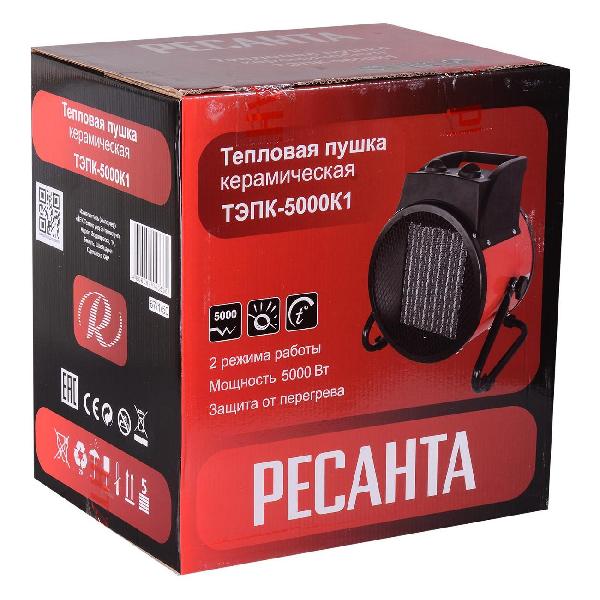 Тепловая пушка «Ресанта» ТЭПК-5000К1 (67/1/50) работает от сети и рассчитана на быстрый обогрев помещения.