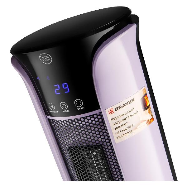 Тепловентилятор Brayer BR4806, фиолетовый — модель c тремя уровнями мощности работы: 0,03 кВт, 1 кВт и 2,2 кВт. Равномерное распределение нагретого воздуха осуществляется при помощи безлопастного вентилятора. Обогреватель рассчитан на площадь до 20 м². В основе работы лежит керамический нагревательный элемент. Предусмотрена возможность вентиляции без нагрева. Уровень шума не превышает 40 дБ.