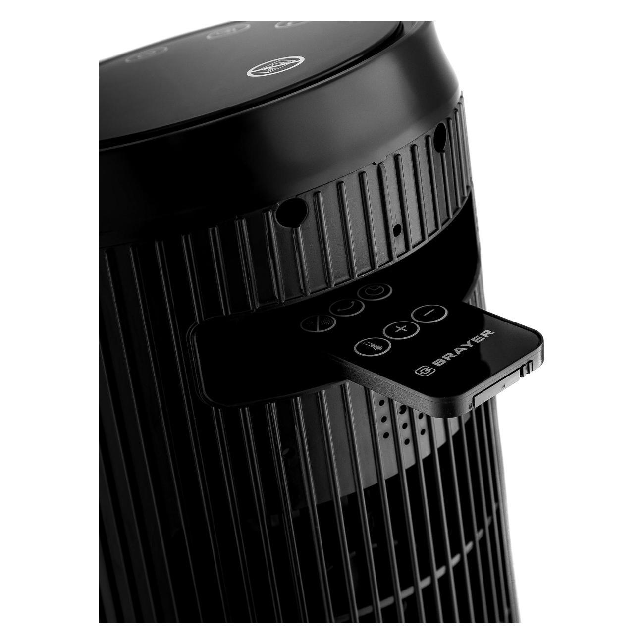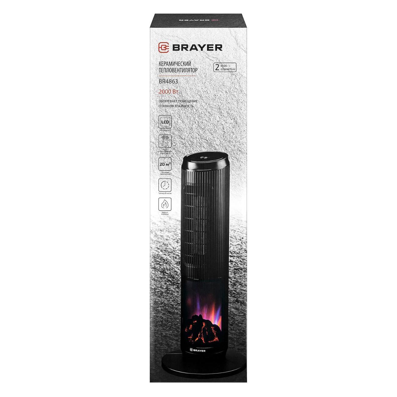 Колонный тепловентилятор Brayer BR4863 в черном корпусе из ABS-пластика сочетает современный дизайн с функциональностью. Безлопастной вентилятор и поворотное основание обеспечивают равномерное распределение потоков воздуха. LED-дисплей отображает параметры работы.