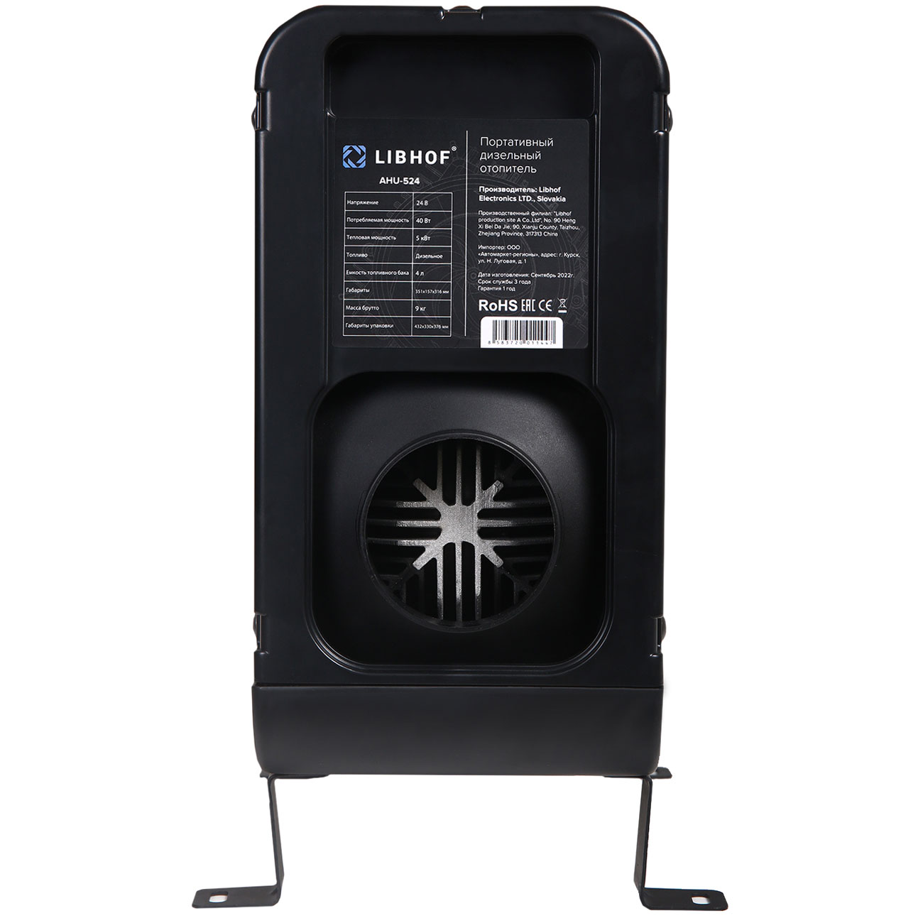 Тепловентилятор Libhof AHU-524 в комбинированном корпусе белого и черного цветов оснащается встроенным сетевым кабелем длиной 1,5 м. Габариты устройства составляют 15,7х35,1х31,6 см, масса — 6,6 кг. Прибор оснащается нагревательным элементом типа спираль. Предусмотрена система отключения при перегреве. Корпус изготавливается из пластика и металла и обладает защитой по стандарту IP10.