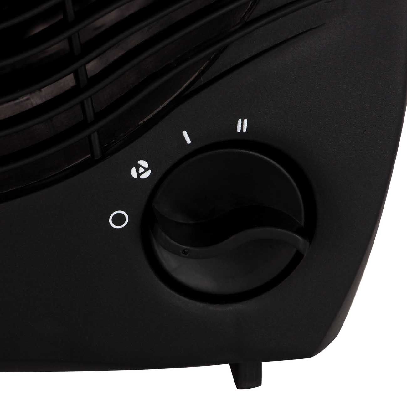 У этой модели три режима работы: тёплый, горячий и холодный воздух – в последнем случае прибор действует как обычный вентилятор, поэтому окажется полезным и в жаркое время года. Управление механическое, производится при помощи поворотного регулятора. Включение сопровождается световой индикацией.