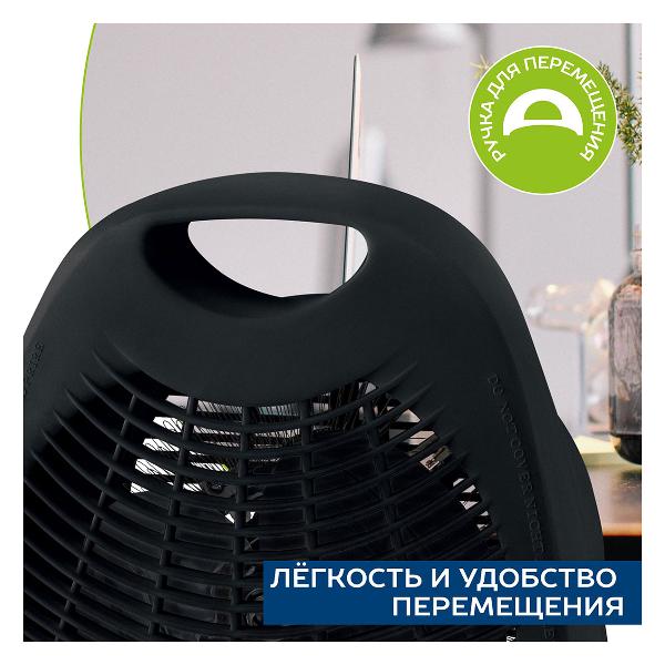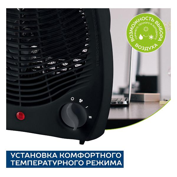 Весит прибор 1,05 кг при габаритах 26,5х21,5х13 см. Устройство рассчитано на помещения, площадь которых не превышает 20 м² и работает в трех режимах, включая два температурных. В случае риска перегрева или при опрокидывании срабатывает автоматическое отключение.
