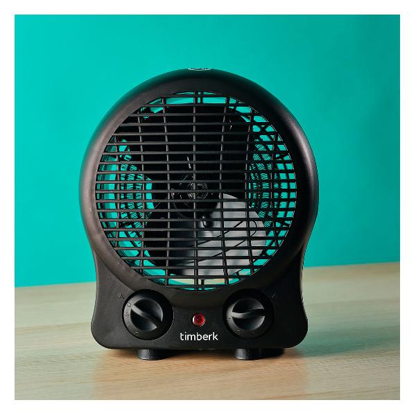 Тепловентилятор Timberk T-FH2-B10S-B — настольная модель в пластиковом корпусе черного цвета. Прибор работает в трех режимах, один из них — холодный обдув.
