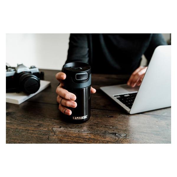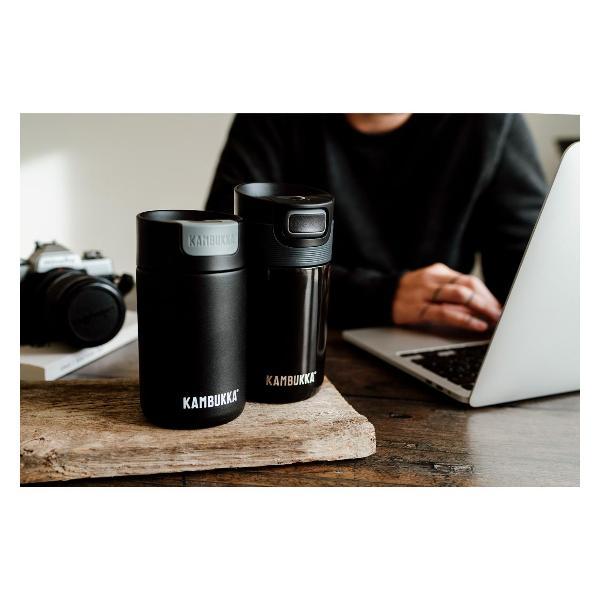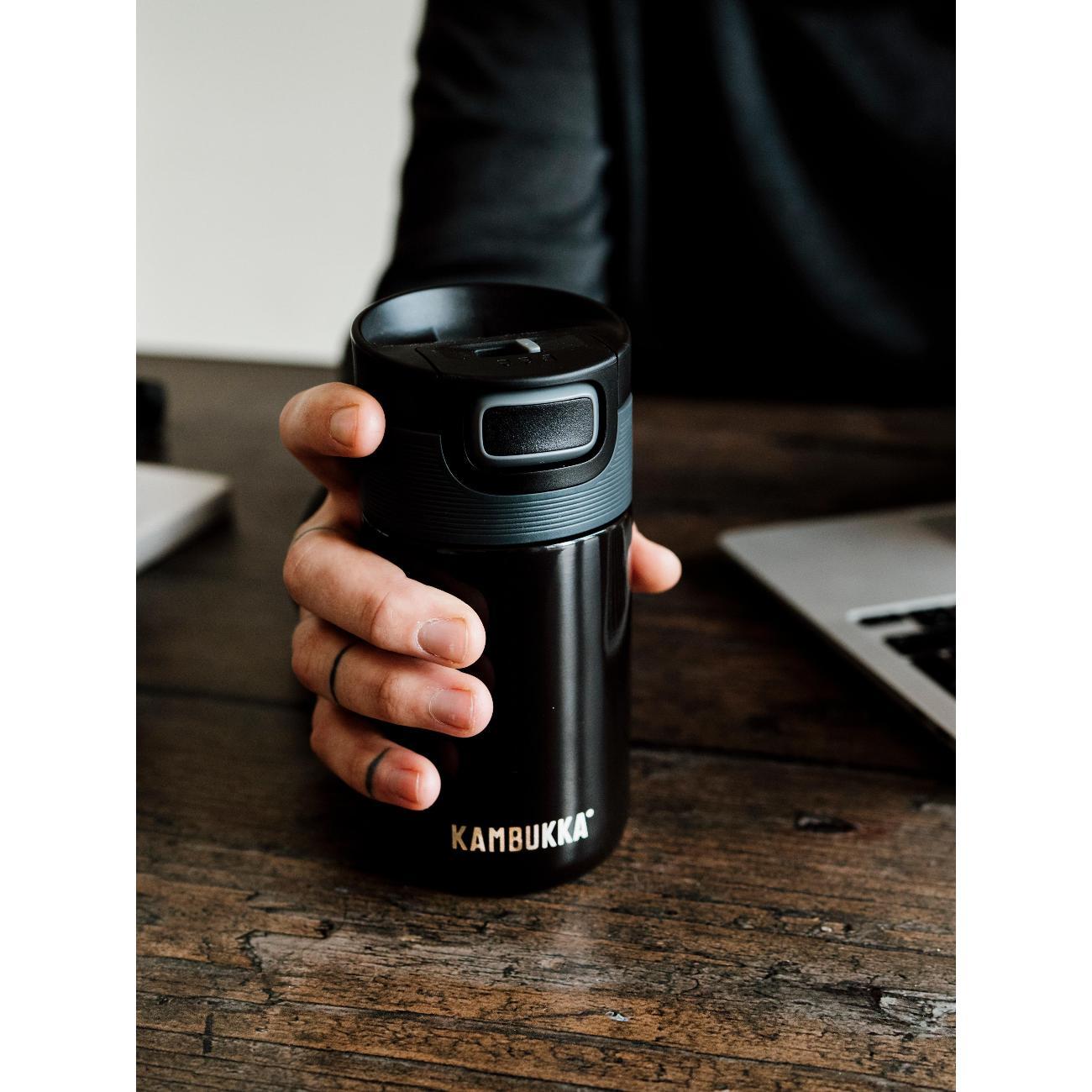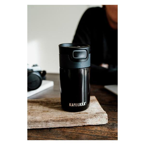 Термокружка Kambukka 11-01022 способна поддерживать температуру горячих напитков на протяжении 5 часов. Время сохранения холода достигает 11 часов. Корпус модели выполнен из стали, устойчивой к образованию коррозии и различным механическим повреждениям. Внешние стенки стакана не нагреваются. Объем составляет 300 мл. Снимающаяся крышка гарантирует 100% герметичность термокружки. Доступно три положения клапана-задвижки: «Открыто», «Нажать для глотка» и «Закрыто». Нижняя часть корпуса прорезинена, что обеспечивает надежную фиксацию стакана на любой поверхности.