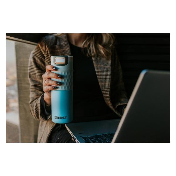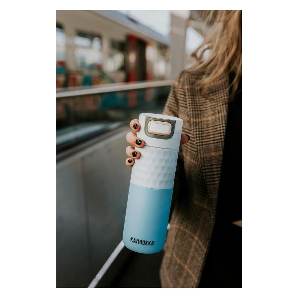 Термокружка Kambukka 11-01047 объемом 500 мл подойдет для хранения горячих и холодных напитков. Время сохранения тепла достигает 5 часов, холода — 11 часов. Основная часть корпуса модели выполнена из прочной нержавеющей стали, дно прорезинено для более надежной фиксации на любой поверхности. Размер стакана составляет 21,9x7,1 см. Диаметр горлышка равен 5,6 см. Можно мыть в посудомоечной машине. Герметичная крышка оборудована положениями: «открыто», «закрыто» и «нажать, чтобы пить». Модель не содержит вредное вещество бисфенол А. Вес термокружки составляет 0,53 г.