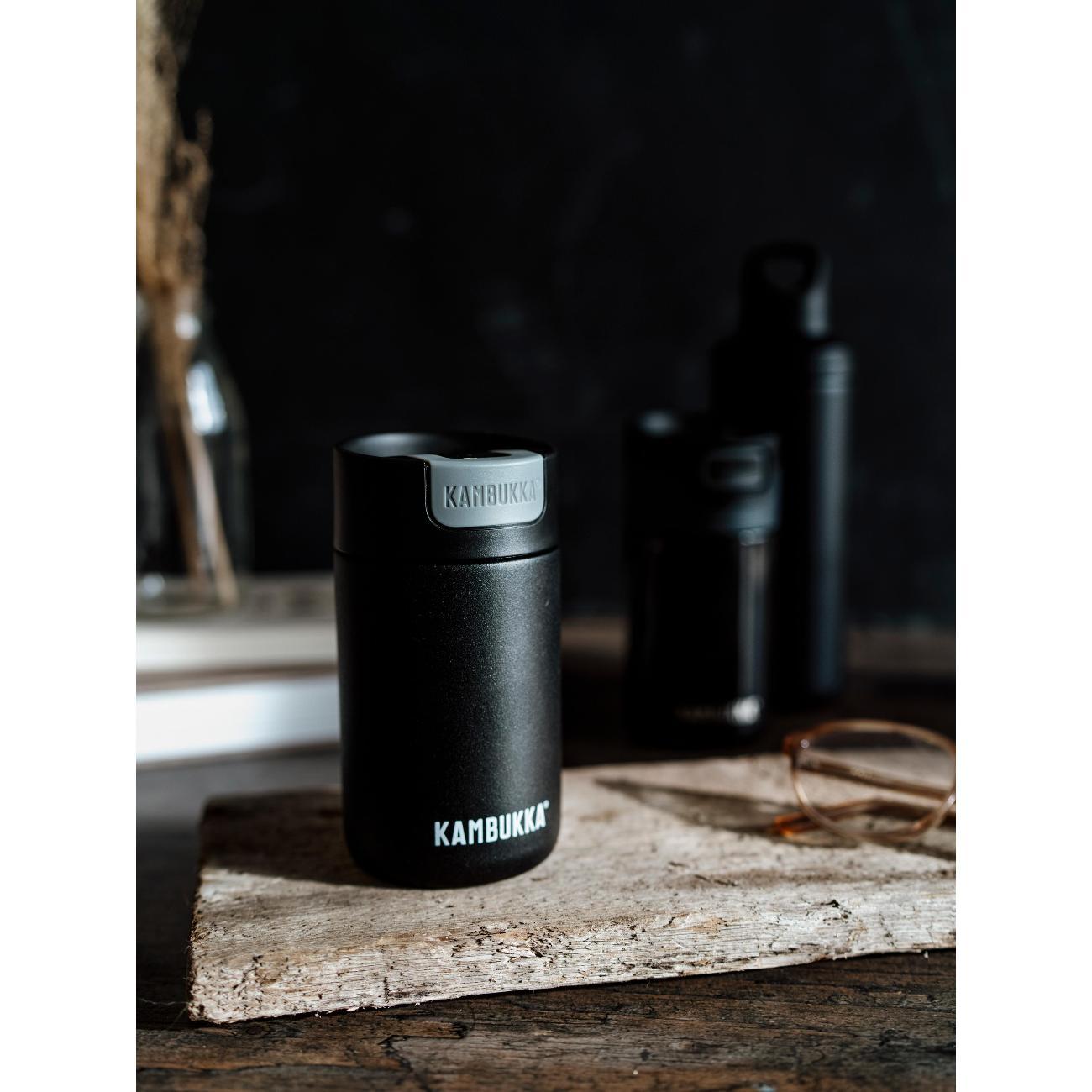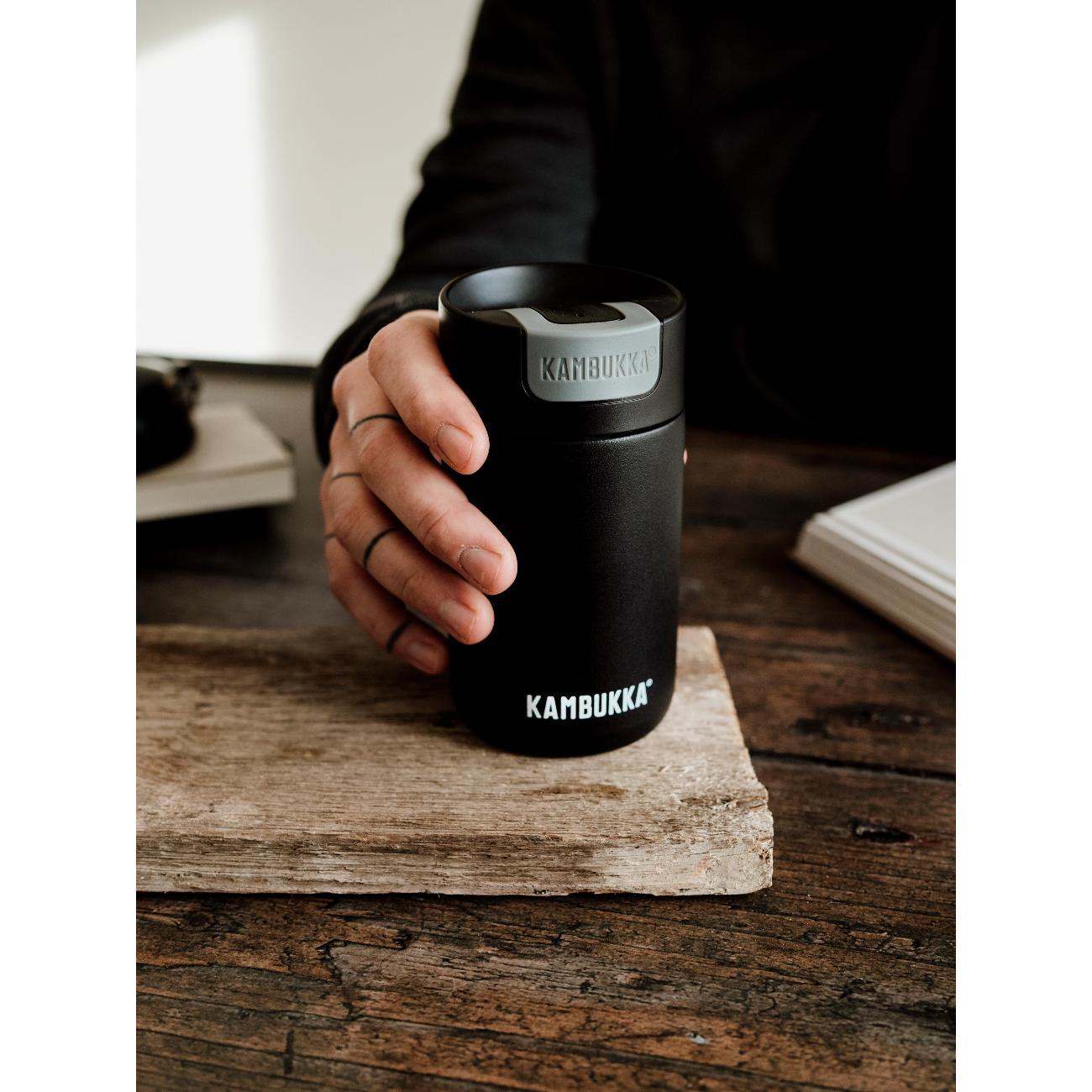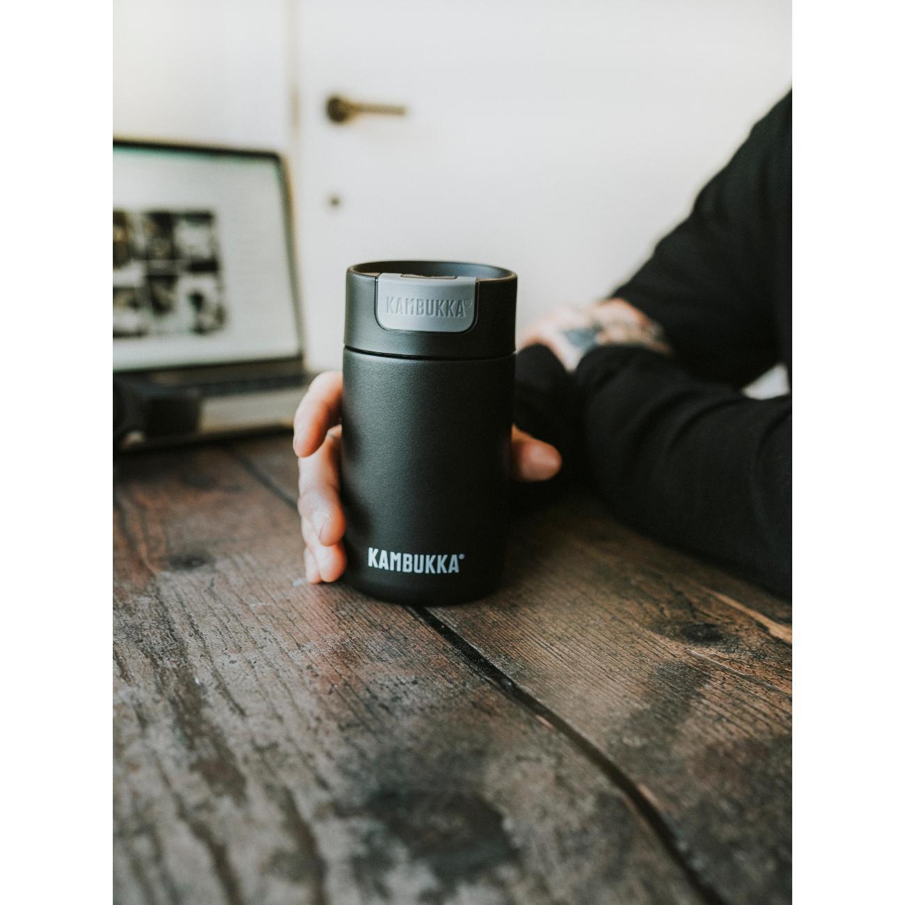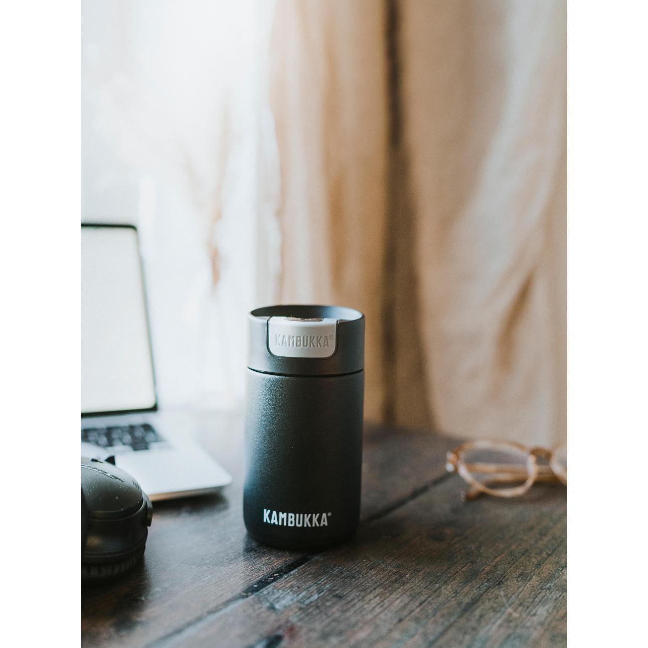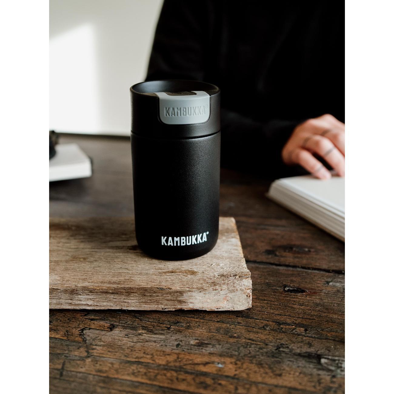 Термокружка Kambukka 11-02010 представлена в прочном стальном корпусе с высокой степенью защиты от образования коррозии. Подходит для мытья в посудомоечной машине. Объем составляет 300 мл. Сверху расположена герметичная пластиковая крышка, которая открывается и закрывается при помощи кнопки. Прорезиненное дно обеспечивает устойчивое размещение кружки на столе без повреждения поверхности. Диаметр горлышка модели равен 5,6 см. Максимальное время поддержания высокой температуры напитков достигает 5 часов. Продолжительность сохранения холода составляет 11 часов.