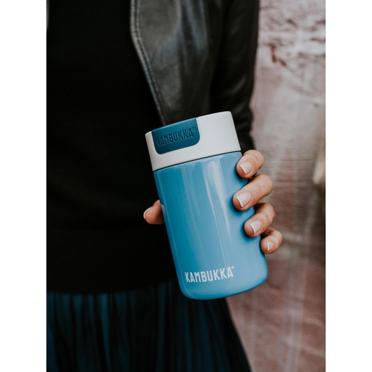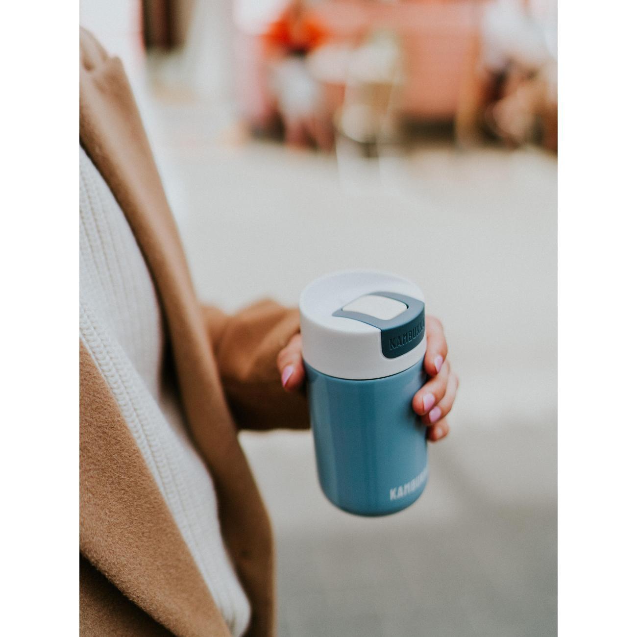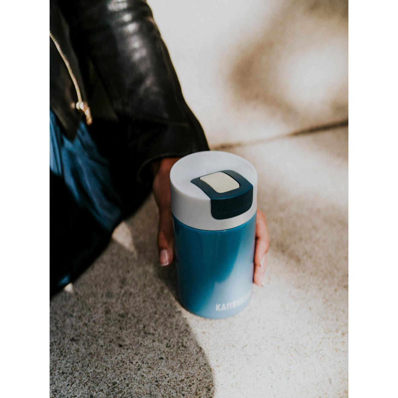 Термокружка Kambukka 11-02015 представлена в прочном стальном корпусе с высокой степенью защиты от образования коррозии. Подходит для мытья в посудомоечной машине. Объем составляет 300 мл. Сверху расположена герметичная пластиковая крышка, которая открывается и закрывается при помощи кнопки. Прорезиненное дно обеспечивает устойчивое размещение кружки на столе без повреждения поверхности. Диаметр горлышка модели равен 5,6 см. Максимальное время поддержания высокой температуры напитков достигает 5 часов. Продолжительность сохранения холода составляет 11 часов.