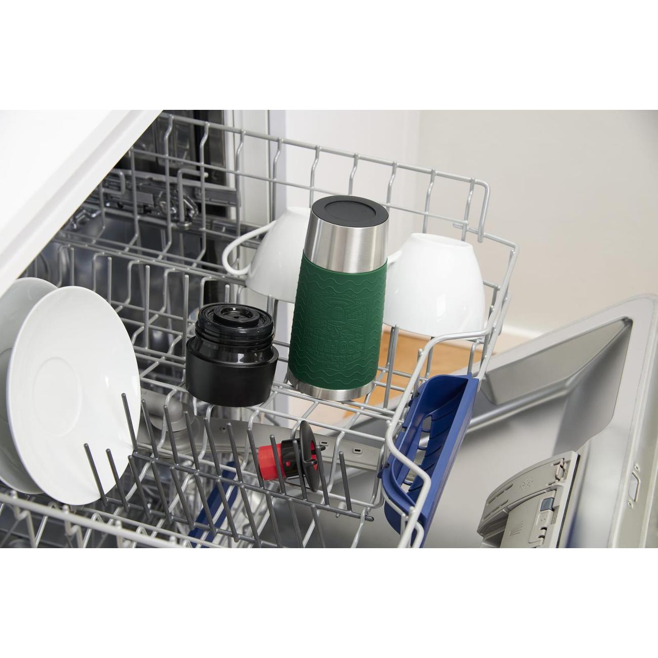 Дно с резиновой накладкой позволяет устойчиво стоять на поверхности. Крышка открывается путем нажатия кнопки Quick Press и позволяет пить со всех сторон. Крышка плотно завинчивается на корпус, сохраняя полную герметичность. Колба изготовлена с двойной стенкой. Кружка способна сохранять температуру теплых напитков до 4 часов, холодных — до 8 часов. Термокружку разрешено мыть в посудомоечной машине. Вес кружки составляет 398 г.