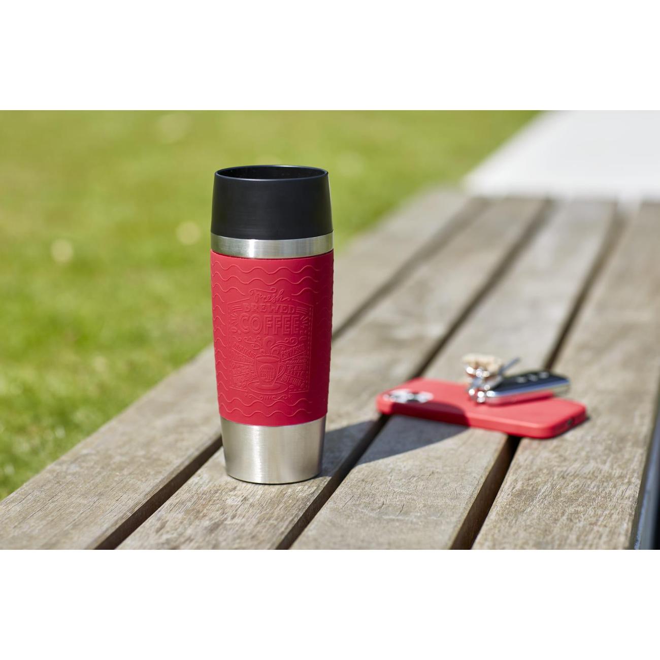 Термокружка Tefal Essential 0,36 л N2021710 выполнена в корпусе из качественной нержавеющей стали, которая обеспечивает длительный срок службы. Специальный силиконовый манжет с тиснением не позволит выскользнуть из руки. Цвет манжета — красный. Удобная эргономичная форма позволяет устанавливать термокружку в подстаканник автомобиля или переносить в сумке.