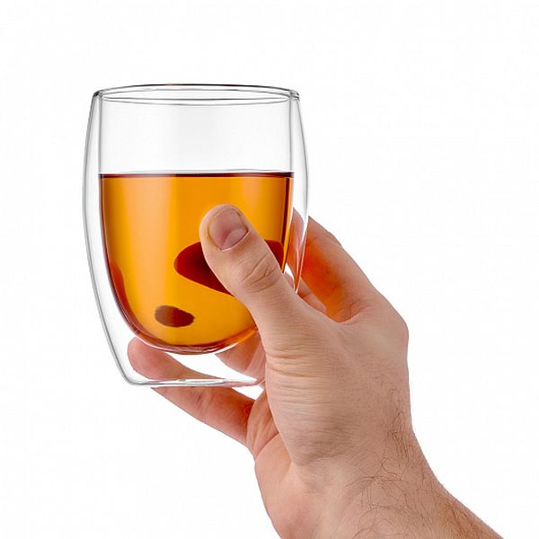 Изделие выполнено вручную из прозрачного боросиликатного стекла, устойчивого к перепадам температур. Его можно ставить в морозильную камеру, микроволновую печь и в духовой шкаф, а также очищать в посудомоечной машине. Особая конструкция корпуса, напоминающая термос, помогает удерживать тепло и холод напитков. Его внешние стенки не перегреваются и не покрываются конденсатом.