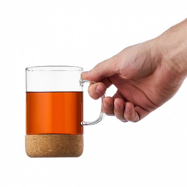 Корпус дополнен пробковой подставкой, защищающей от случайных ударов об стол и предотвращающей скольжение по гладкой поверхности. Посуда станет оригинальным решением повседневной сервировки и впишется в интерьер современной кухни. Она подходит для подачи чая, кофе, глинтвейнов и морсов.