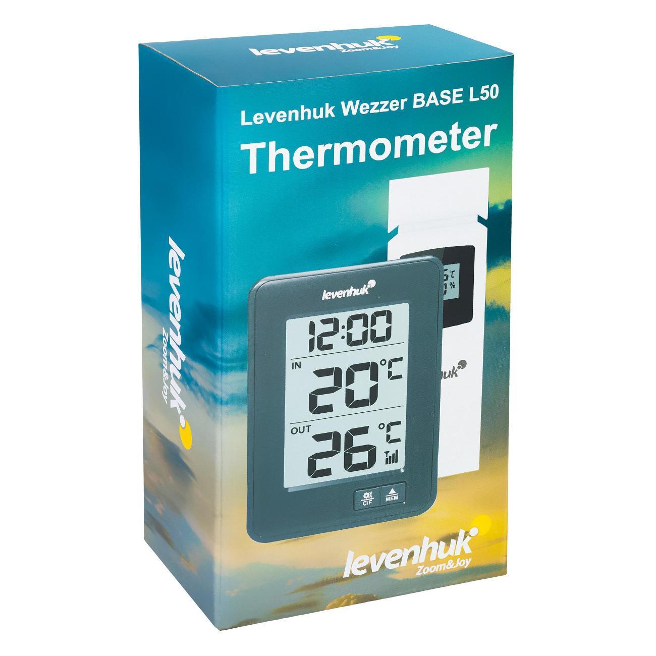 Levenhuk Wezzer BASE L50 – прибор, который сочетает в себе функции термометра и часов. Измерения температуры проводятся в двух местах одновременно – благодаря наличию в комплекте беспроводного внешнего датчика. Это позволяет узнавать температуру и дома, и за окном, получая наиболее точные климатические данные без обращения к внешним метеослужбам. Также в памяти прибора сохраняются минимальные и максимальные показания. С таким гаджетом вы всегда будете в курсе приближающегося похолодания.