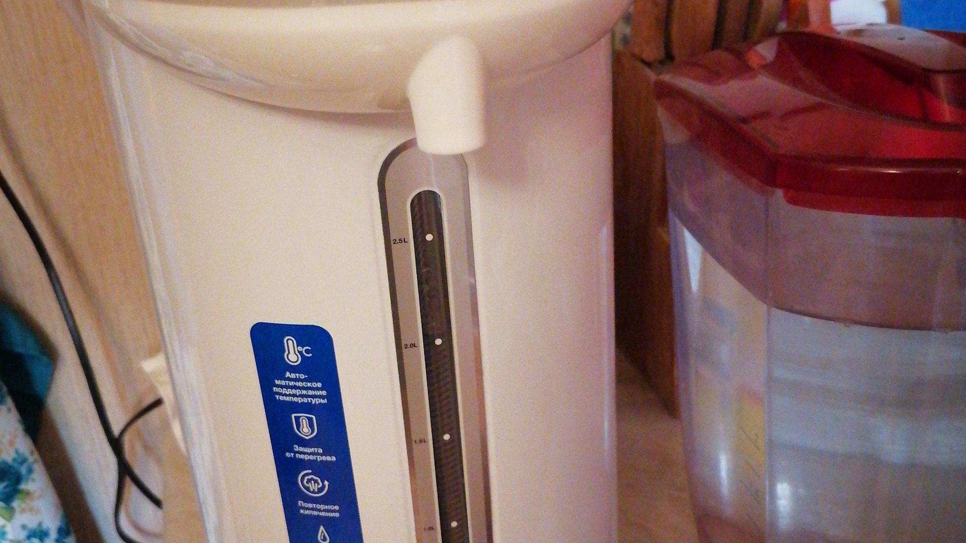 Вместительный термопот, приятный цвет который впишется в любой интерьер. Удобен в использование, без брака, все работает исправно, понятен в эксплуатации. Пришла выбрала, сразу забрала, гарантия год, срок службы два года. Подключила без проблем, постороннего запаха не присутсвовало, после кипечения так же запаха не было. Милый дизайн в бело-сером цвете.