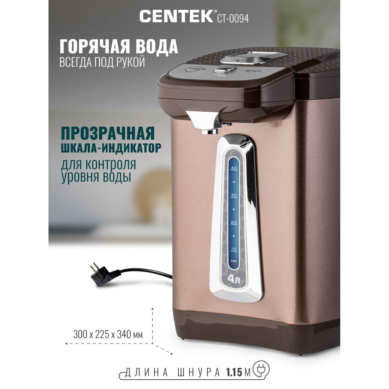 Вы можете купить Термопот Centek CT-0094 4л в магазинах М.Видео по доступной цене. Термопот Centek CT-0094 4л: подробное описание, фото и отзывы реальных покупателей, характеристики, возможность скачать инструкции и подобрать аксессуары.