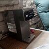 Серый пластиковый корпус комплектуется стеклянной колбой, синтетическим фильтром от накипи и электрическим насосом. Размеры — 32х15,5х27 см.