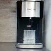 Сломался старый термопот, заказали этот, привезли за пару часов, день в день. Пока не привыкли к медленной подаче воды, старый наливал быстрее (здесь струйка как в кофемашине). НО очень удобно, что наливает нужной температуры и объемом сразу, не надо ждать кипячения (значительная экономия электричества и времени) диапазон от 45-100 градусов+холодная вода. По сравнению со старым 85 градусов здесь реально горячее, про 100 вообще молчу😁За счет фильтра+мы заливаем фильтрованную воду, спокойно наливаю ребенку чай 45, 55 градусов, не переживая, что вода не кипяченая, при этом не нужно дополнительно разбавлять как раньше. Внутри он пластиковый, а не нержавейка, бак с фильтром тоже пластик. Стоит устойчиво за счет 4 присосок. Сенсор реагирует быстро. Защита от случайного нажатия - для использования, кнопку блокировки нужно подержать секунды 3. Сохраняет предыдущие настройки, например: вы выставили 85 градусов и 100мл, в следующий раз нальет также. По окончании налива воды издает 5 коротких звуковых сигналов и гаснет синяя подсветка, но вода еще льется несколько секунд, это стоит учитывать, если стоит режим постоянной подачи (а не конкретный объем). Также после того как налили кружку, дисплей моргает несколько секунд, в это время можно выбрать другие параметры.
