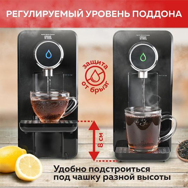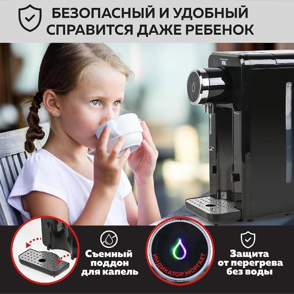 Крутой гаджет для дома -теперь мне не надо ждать пока чайник закипит потому что этот термопот за секунды подает горячую кипяченую воду, если честно я даже удивлена как так быстро-очень мощный! Внешний вид стильный -моей кухне подошел идеально, много места не занимает. Управление элементарное, понравилось то ,что есть 2 режима подачи воды-ровно на одну чашку и непрерывный -это очень удобно. Я довольна.