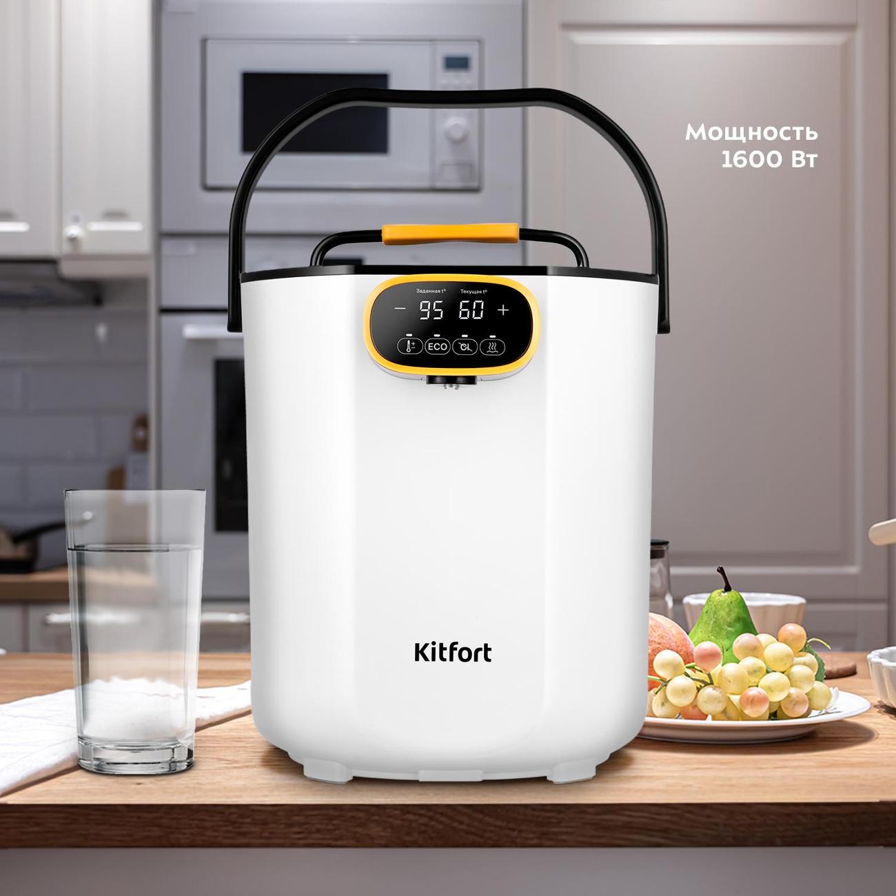 Удобный, симпатичный, понятный. Работает хорошо. Мало пластика соприкасается с водой, в основном металл. Это был основной критерий покупки, как можно меньше пластика в контакте с горячей водой. Раньше был редмонд, служил бы и по сей день, 11 лет, но заметили что внутри сверху , где крышка пластик уже разрушился пошел в воду. И китфорта такого большого кол-ва пластика в зоне крышки нет. Это хорошо.