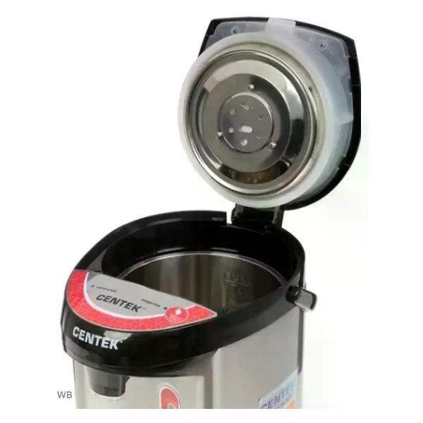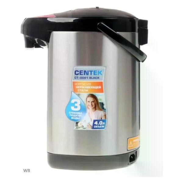 Современные технологии позволяют наслаждаться горячими напитками в любое время без лишних хлопот и ожидания. С термосом-чайником процесс приготовления горячих напитков становится быстрым и удобным. Термопот для воды обладает стильным дизайном и компактными размерами. С термопотом электрическим вы экономите время и электроэнергию. Термопот Centek сочетает в себе стильный дизайн и передовые технологии. Благодаря системе поддержания температуры он всегда готов подарить вам горячий напиток. Эргономичный дизайн делает использование простым и комфортным. Термопот Centek CT-0081 нагревает воду и затем автоматически поддерживает ее горячей, экономя электроэнергию, воду и ваше время. Внутренняя камера и корпус термопота выполнены из долговечной и безопасной нержавеющей стали. Подача воды осуществляется 3 способами: нажатием на кнопку, нажатием на рычаг чашкой и с помощью механического насоса. Объем камеры – 4 литра. В термопоте предусмотрена шкала уровня воды. Прибор имеет функции защиты от включения без воды и защиты от перегрева, безопасную систему блокировки. Термопот оборудован вращающейся подставкой, удобной ручкой для транспортировки и имеет LED-индикаторы работы. Прибор удобен в использовании и прост в уходе Технические характеристики: Мощность - 850 Вт. Материал корпуса - Сталь. Особенности - 3 режима подачи воды, LED-индикаторы работы, Автоотключение при отсутствии воды, Вращение на 360°, Закрытый нагревательный элемент, Защита от включения без воды, Поддержание оптимальной температуры. Гарантия - 1 год. Объем - 4. 0 л. Длина кабеля - 120 см. Режимы - Нагрев, Поддержание температуры. Управление - Механическое, Электронное.