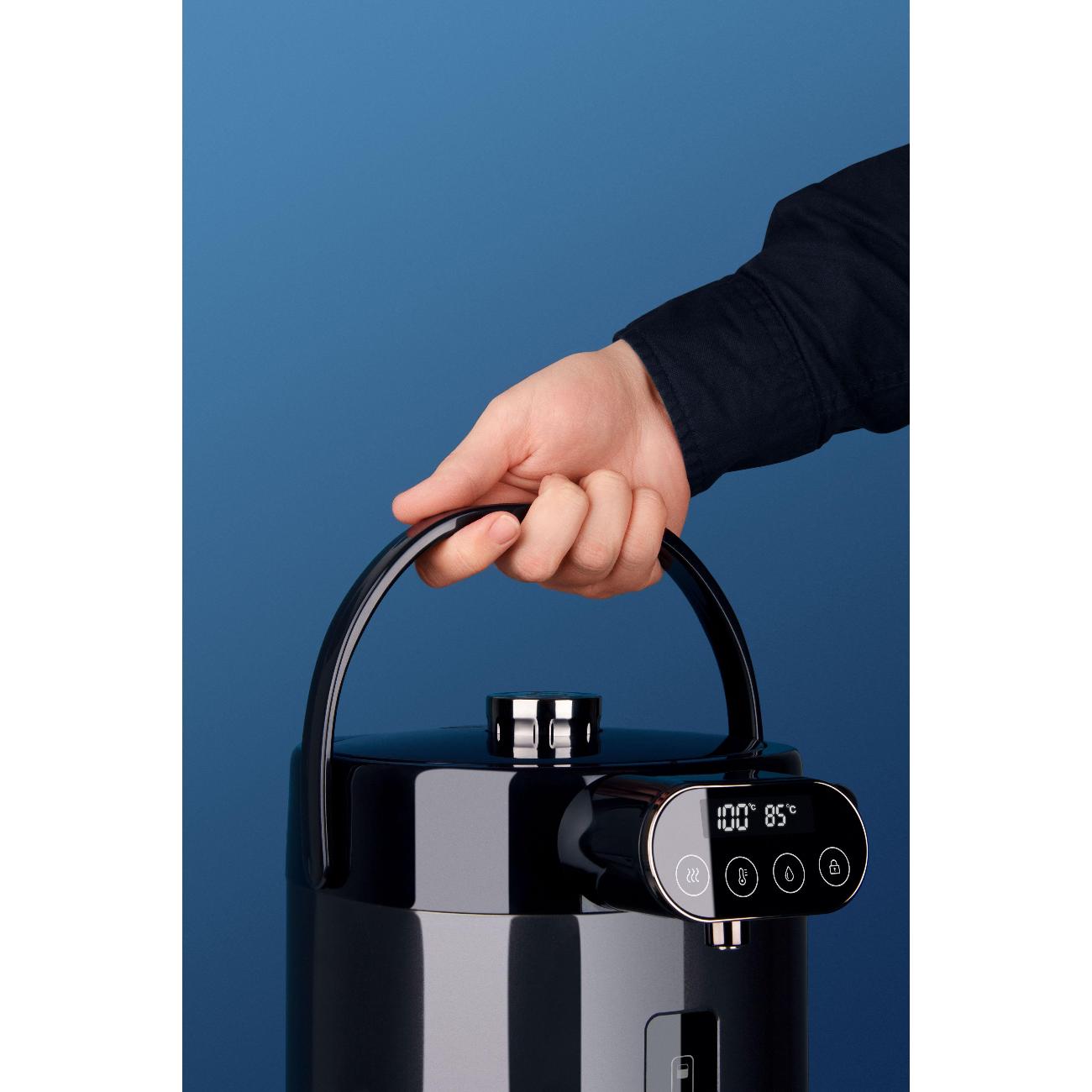 Внешне термопот смотрится стильно и современно, хороший объем бака, на этом все плюсы для меня закончились. Главный минус, что подача воды осуществляется только при помощи нажатия рычага, который каждый раз нужно разблокировать 5ти секундным нажатием на кнопку блокировки. Блокировка действует только на рычаг, все остальные кнопки срабатывают от малейшего случайного нажатия ( начинается повторное кипячение, меняется температура или объем подаванмоц жидкости). Не понимаю откуда такая стоимость. Купила со скидками и бонусами за 2800- прям красная цена. Есть термопоты гораздо лучше по функционалу. Наверное и свой старый починю, таких уже не купить.