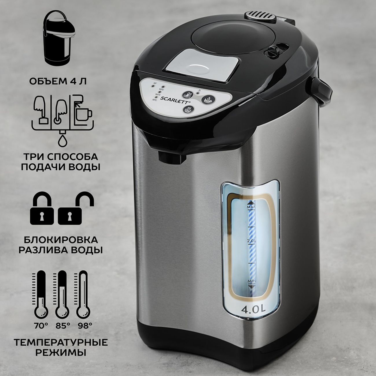 Купили этот термопот 18.08.22 (время использования почти 2 года) . Первые пару месяцев все круто ,потом начала появляться ржавчина сверху под крышкой ,через год использования при наливе новой воды начал сам не произвольно течь , выключали из розетки ,потом вроде на какое то время переставал ,так мучались еще почти год ,две недели назад (в мае 2024) начала переставать работать кнопка налива , по нажимаешь все кнопки ,вроде работает и так все время позже вообще перестала, нам сказали от того ,что попадает влага под «дисплей» окислилась . Купили новый ,этой же марки, но с защитой кнопок ,не знаю эта защита поможет ли попаданию влаги, но от протечки самопроизвольной ,должно. В целом ,термопот это классная вещь ,особенно когда дети дома и мы любители чая .