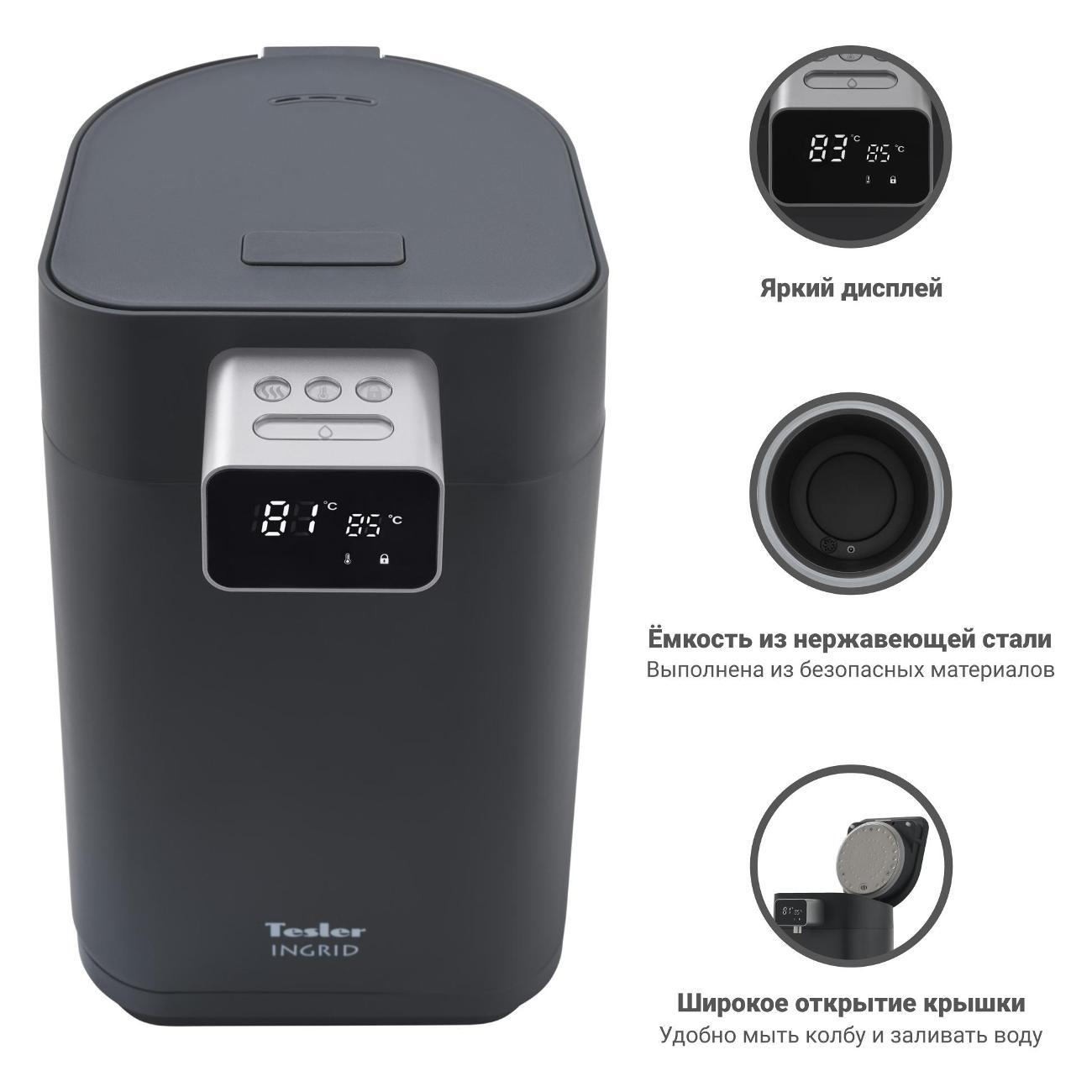 сразу после распаковки наполнила водой до метки, включила на кипячение, через минут 5-7 начал кипеть не переставая, вода брызгала через отверстие для выхода пара, пока не выключила из розетки, при этом показывал температуру то 16, то 18 градусов. очень разочарована, сделала возврат.