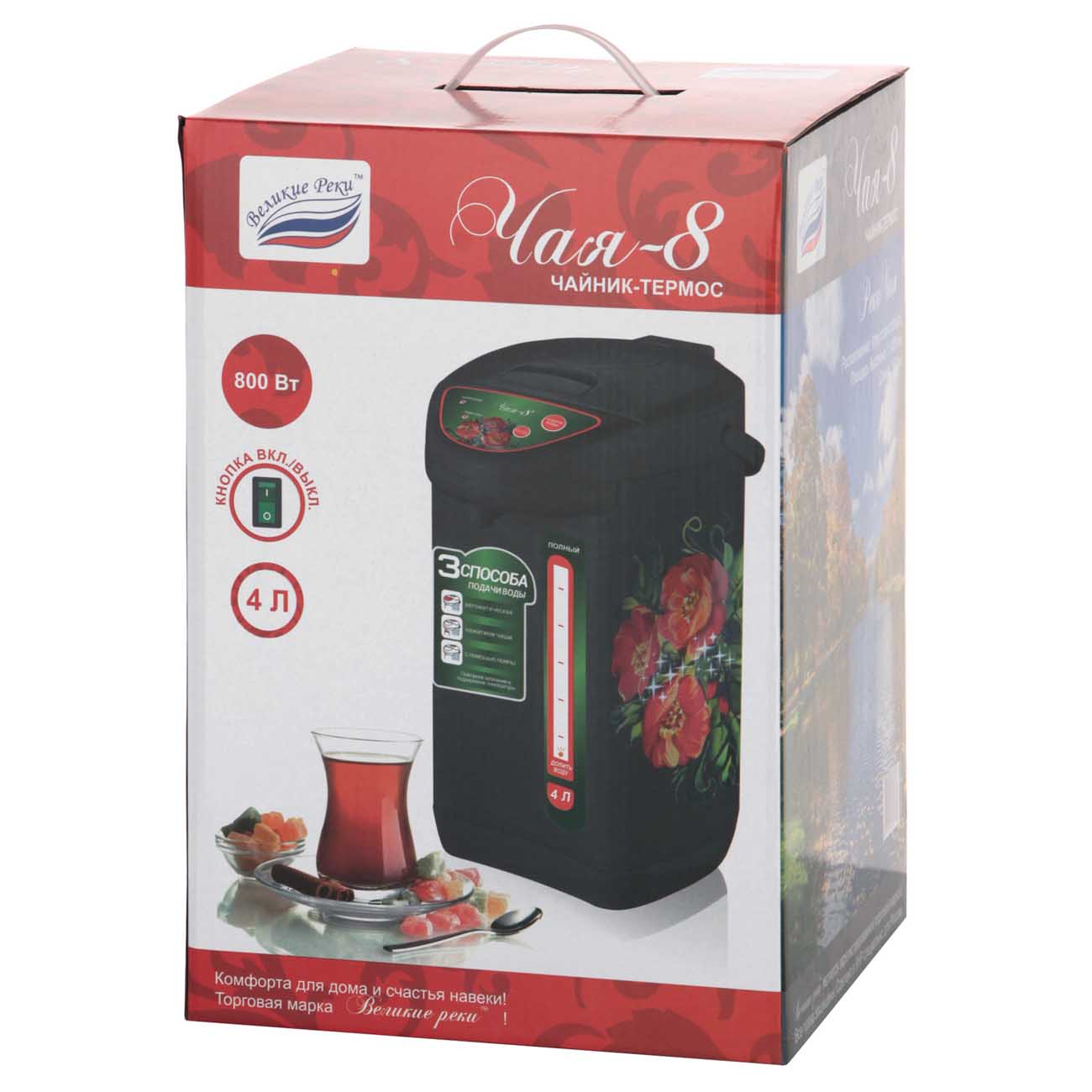 Термопот «Великие Реки Чая-8» стильно выглядит, быстро кипятит воду и автоматически поддерживает её в горячем состоянии. Благодаря ему вы в любой момент сможете заварить чай, приготовить кофе или другие напитки.