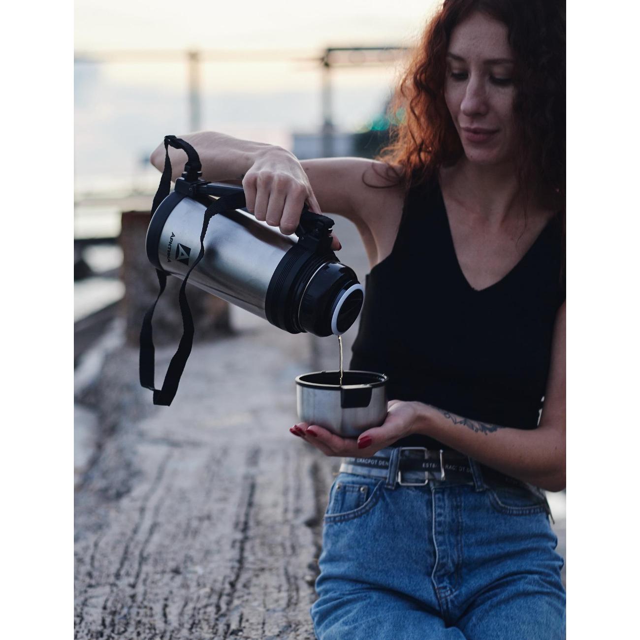 Хороший термос, через 12 часов после наполнения кипятком можно наслаждаться горячим напитком. Удобно наливать, чуть открутив крышку. Два чашки, ручка. Корпус ничем не покрыт, а значит слезать нечему - дольше останется красивым.