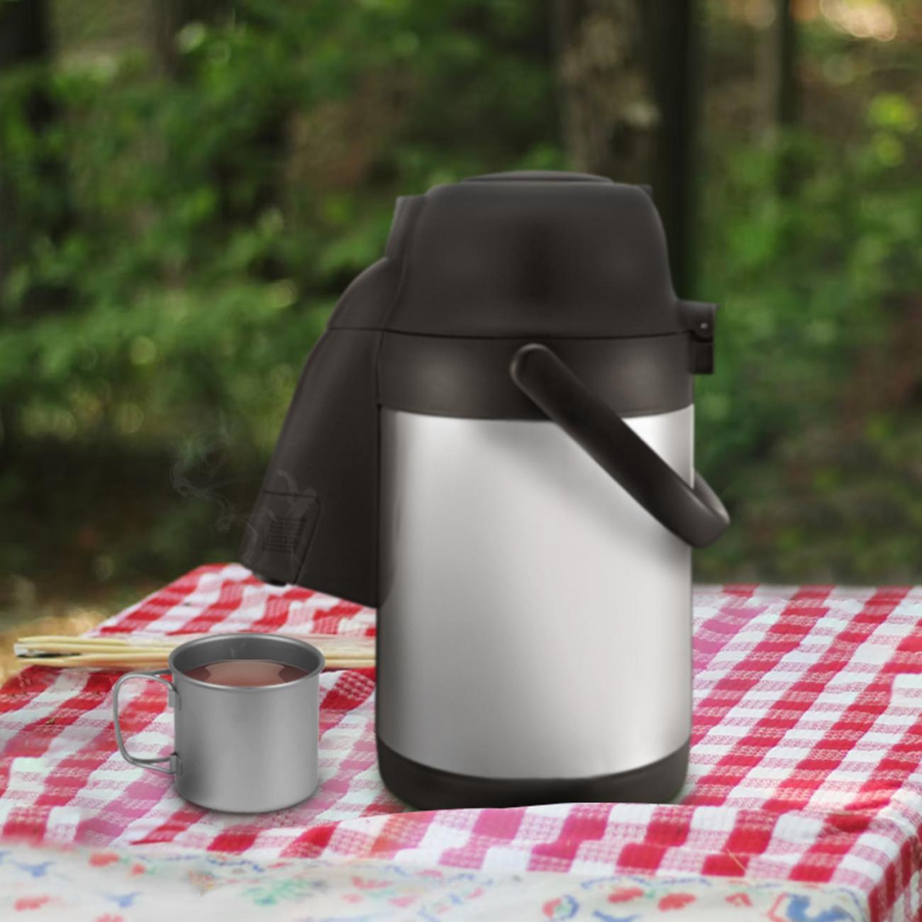 Очень симпатичный термос. Неплохо держит тепло (с 9 утра путешествовал, в 19 часов глинтвейн был уже не обжигающим, но достаточно теплым). Удобная ручка для переноски, выдвижной носик. Блокировка помпы происходит при перемещении рычага налево (то есть остается открытой надпись "closed", в инструкции написано немного иначе). Блокировка при этом не полная. Чуть подтекает крышка, хотя внимательно закрывала. В целом - хороший удобный термос для большой компании.