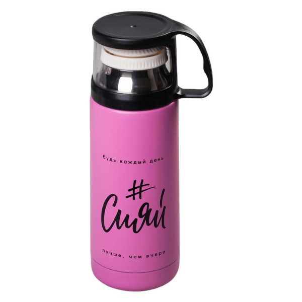 Термос «Командор» 4564882 с диаметром горлышка 9 см используется для поддержания температуры напитков. Модель сохраняет тепло или холод в течение 8 часов. Полезный объем колбы составляет 0,35 л. Пробка оснащена клапаном, предотвращающим протекание жидкости. Прорезиненная ручка не скользит в ладони. В набор входит небольшой завинчивающийся колпачок, который заменяет собой обычную кружку. Корпус розового цвета изготовлен из комбинации нержавеющей стали и пластика. Размеры — 20,5х9х20,5 см. Вес — 0,238 кг.