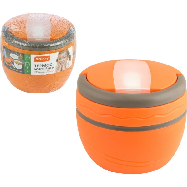Термос Mallony T85050 предназначен для сохранения температуры напитков. Материал корпуса — пластмасса. Вес — 0,279 кг. Особенность модели — способность сохранять тепло до шести часов и холод до двух часов. Объем — 0,5 литра. Диаметр горлышка —14,5 см. Габаритные размеры — 11x13x13 см. Цвет — оранжевый. Страна-производитель — Китай.