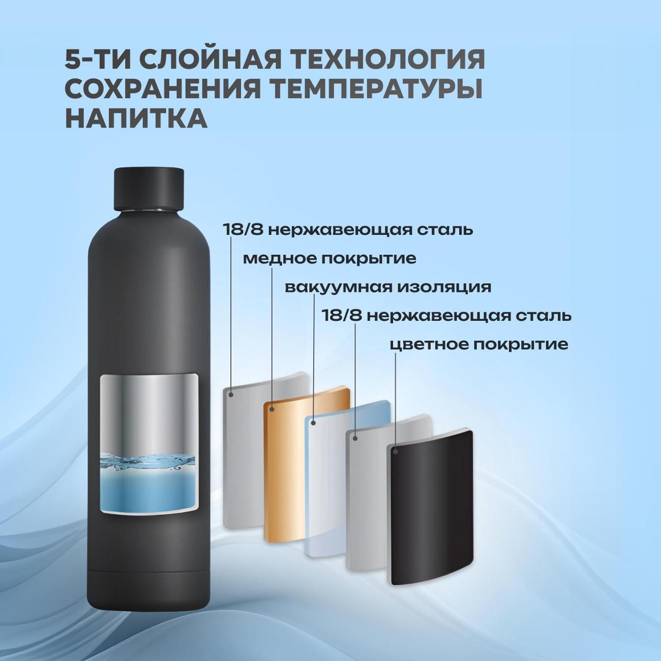 Ваш образ жизни требует надежности и комфорта, и именно это вы найдете в нашей термобутылке. Этот термос не просто сохраняет температуру вашего напитка, он станет вашим верным спутником в любых приключениях.