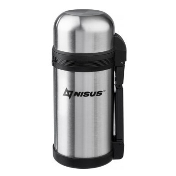 Универсальный термос Nisus 011 1200ML цвета «хром» весит 830 г. Термокружка с двойными стенками хорошо сохраняет тепло воды: после 6 часов жидкость, которая изначально была температурой 100°C, охладится до 82°C, после 10 часов — до 76°C, после 12 часов — до 72°C, через 24 часа — до 53°C. Модель объемом 1,2 л может сохранять холод до 24 часов. Идущую в комплекте крышку можно использовать в качестве чашки.
