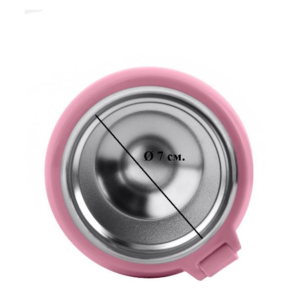 Termico 250106 — пищевой термос розового цвета, сохранит еду горячей в течение 8 ч, поддержит холод на протяжении 12 ч. Вместительность данной модели составляет 0,53 л. В комплектацию входит закручивающаяся крышка-стаканчик, складная ложка, ремень для переноса, убирающаяся прорезиненная ручка. Материал внутреннего покрытия и корпуса — нержавеющая сталь. Диаметр горлышка представленного изделия — 7 см.