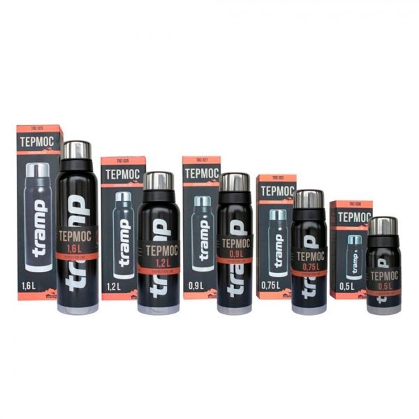 Tramp TRC-031 объемом 750 мл относится к серии Expedition Line. Сосуд двухслойный, выполнен из нержавеющей стали 18/8 и пластика. В пробке есть каналы для налива, что позволяет не вынимать ее полностью и снизить теплопотери. В комплекте — две чашки: большая стальная размером 7 х 6 см (130 мл) и малая пластиковая размером 6,5 х 4 см (100 мл). Диаметр горлышка термоса — 4,5 см. Очистку колбы упрощает особая обработка внутренней стороны.