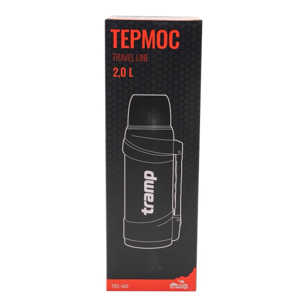 Термос Tramp TRC-140 Travel-2000 объемом 2 л оснащен сетчатым фильтром, который позволяет заваривать чай, травы, ягоды непосредственно в колбе. Она выполнена из нержавеющей стали марки 18/8 и не влияет на вкус и аромат напитка. Пробка снабжена особым откидным механизмом, который позволяет не вынимать ее полностью при наливании жидкости. Чашкой может служить крышка, также в комплект входит еще одна пластиковая чашка. Термос оснащен ремнем для ношения.